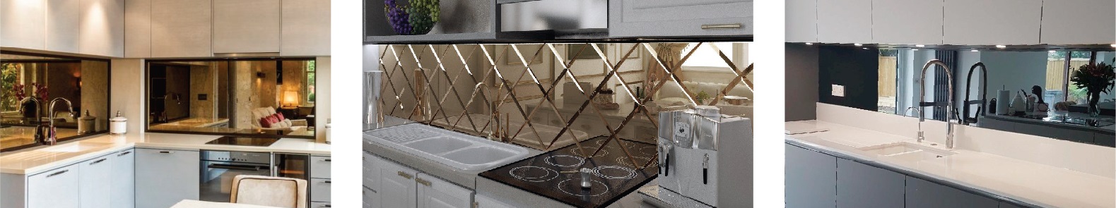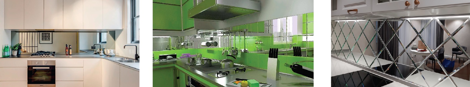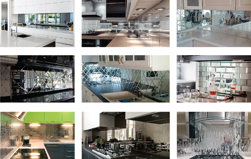 Поскольку основой зеркального фартука является закаленное стекло, то ему не страшны перепады температур, кроме того, уход за зеркальной поверхностью не составит труда, и она устойчива ко всем видам бытовой химии. Помимо этого, с помощью зеркала можно изменить пространство и освещенность вашей кухни. Зеркальный фартук — одно из лучших решений для небольших пространств.